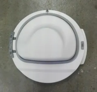 Puerta para secadora de la marca Bosch. Pieza de repuesto en color blanco con marco gris. - Diseño circular. - Bisagra metálica. - Cierre de seguridad.
