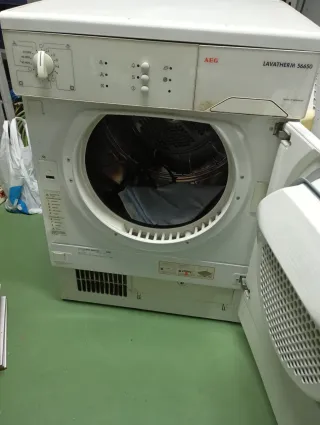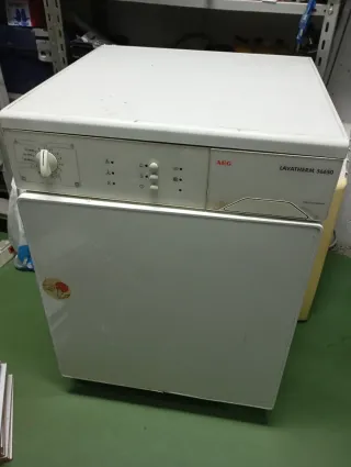 Secadora de carga frontal AEG Lavatherm 56650. - Color blanco. - Fabricada en Alemania. - Panel de control con selector de tiempo y programas. Sólo le falta la correa del motor al bombo y funcionaria.