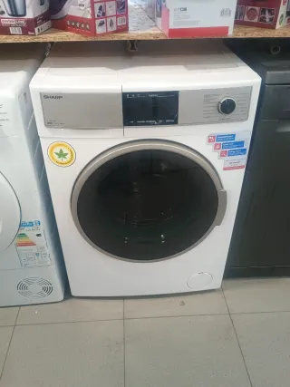 Lavadora secadora de la marca Sharp en color blanco. Cuenta con un diseño moderno y panel de control digital. - Carga frontal. - Puerta redonda. - Compartimento para detergente. Garantía 4 meses estamos en avinguda del Mediterráne número 3 reus 📲 641284991
