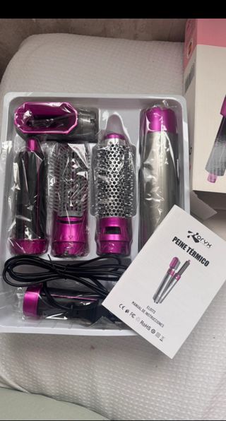 Cepillo modelador multifuncional con varios accesorios. - Incluye cabezal secador. - Incluye cepillo redondo. - Incluye cepillo desenredante. - Incluye accesorio para rizar. - Incluye manual de instrucciones.
