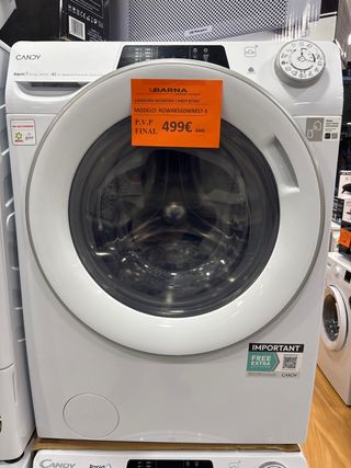 Lavadora-secadora Candy de carga frontal. - Modelo: ROW4856DWMS7-S - Capacidad de lavado: 8 kg - Capacidad de secado: 5 kg - Velocidad de centrifugado: 1400 rpm - Motor Inverter - Programas rápidos
