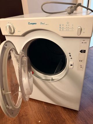 Secadora de ropa Aspes Ideal. - Modelo SA-313. - Panel de control con selector de programas y temperatura. - Puerta frontal con cierre de seguridad. - Etiqueta energética clase D.