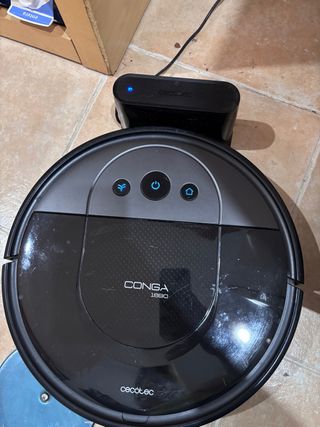 Robot aspirador Conga 1890 de Cecotec. Aspira y friega Se encuentra en buen estado y funciona correctamente y carga pero la batería le dura media hora. De ahí el precio. Cepillo nuevos y filtro nuevo. Incluye base de carga, deposito de fregado y aspirado, depósito solo de aspirado y robot. - Modelo: Conga 1890. - Marca: Cecotec. - Color: Negro.