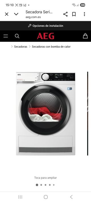 Secadora AEG serie 9000 con bomba de calor, en perfecto estado. - Capacidad de 9kg. - Color blanco. - Diseño elegante y moderno.