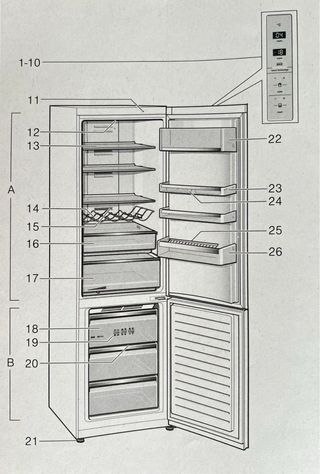 Componentes en perfecto estado - BALDA de cristal Easy Access - COMPARTIMENTO Mantequilla y queso (22) - CAJÓN CONGELADOR 1 (18) 20€ - CAJÓN CONGELADOR 2 (19) 20€ - CAJÓN CONGELADOR 3 (20) 20€ Disponibles más componentes del frigorífico (otros cajones, baldas de cristal, botellero, ventilador, placa electrónica, botón de encendido (11), luz led (12). Haz tu consulta Crisper Box NO DISPONIBLE Chiller Box NO DISPONIBLE Botellero puerta NO DISPONIBLE 2 bandejas abiertas puerta NO DISPONIBLES Touch Control Puerta NO DISPONIBLE