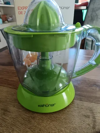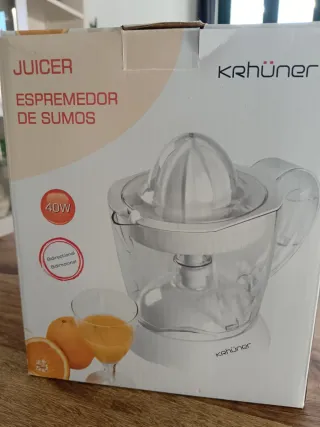 Exprimidor de zumo Krhûner en perfecto estado. - Potencia de 40W. - Diseño bidireccional. - Incluye jarra y tapa. - Ideal para preparar zumos frescos.