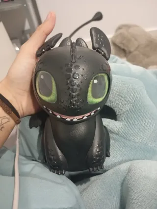 Figura del personaje Desdentado, conocido por su color negro y grandes ojos verdes. - Diseño detallado con escamas. - Alas articuladas. - Cola con punta característica. Contiene un pescado que hace que come