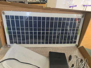 Kit de energía solar portátil que incluye una manta térmica para mayor comodidad. También lleva para USB y DC - Panel solar. - Manta térmica con interruptor. - Adaptador de corriente.