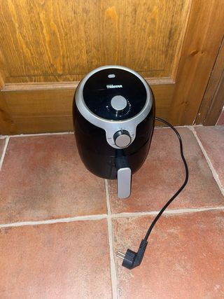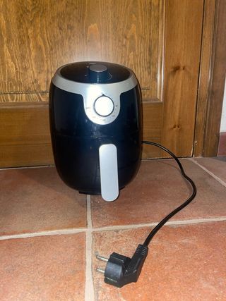 Freidora de aire en color negro, ideal para preparar tus comidas favoritas de forma saludable. Se vende por falta de uso. - Asa ergonómica para extraer la cesta fácilmente. • Control de temperatura regulable hasta 200 °C • Panel táctil con temporizador de 5 a 30 minutos • Cesta antideslizante y antiadherente, fácil de limpiar • Diseño moderno y compacto, ocupa poco espacio Perfecta para preparar patatas, pollo, verduras, pescados, postres y mucho más, con menos grasa y sin humo. 📦 Entrego limpia y lista para usar, con papeles. tiene marcas de uso , pero que no impiden para nada su uso.