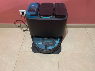 Robot aspirador Conga 11090. - Base de carga. - Depósito de agua. - Depósito de suciedad.