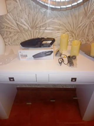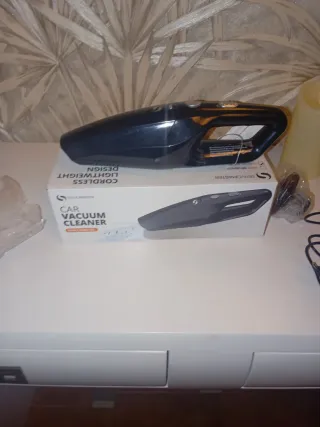 Aspiradora de mano compacta, ideal para mantener tu coche limpio. - Diseño ligero y ergonómico. - Incluye cargador.