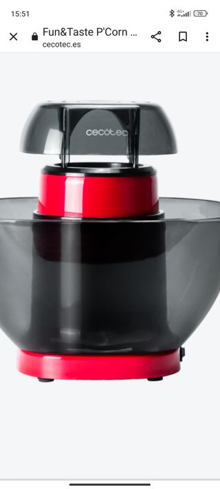 Palomitera cecotec. .Es época de sofá y palomitas, a los niños les encanta poder hacerlas ellos con sus padres, no se te queman las palomitas. Nueva a Estrenar no necesitas nada de aceite ,se coge su mismo bol de 80 gramos de palomitas para comer, se puede lavar en lavavajillas .