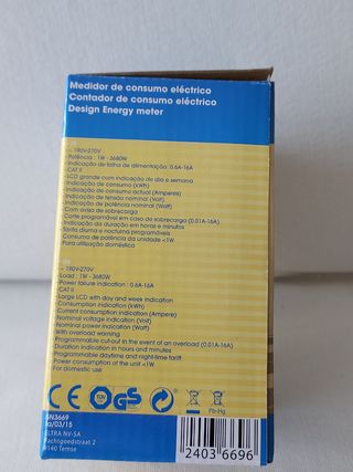 Medidor de consumo eléctrico, totalmente personalizable, sin apenas uso, con su caja e instrucciones.