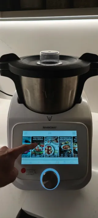 Vendo Monsieur Cuisine Connect 🧁 apenas usada y en perfecto estado. Funciona de maravilla y entrego todos los accesorios: vaporera 🌫️, bandejas, cesta 🧺, mariposa 🌀, espátula 🥄… todo como en las fotos. Características: pantalla táctil, báscula integrada ⚖️, cocina guiada, tritura, amasa, mezcla y cocina al vapor. Motor potente y fácil de usar. Detalle: un lateral empieza a amarillear el plástico, sin afectar al funcionamiento.