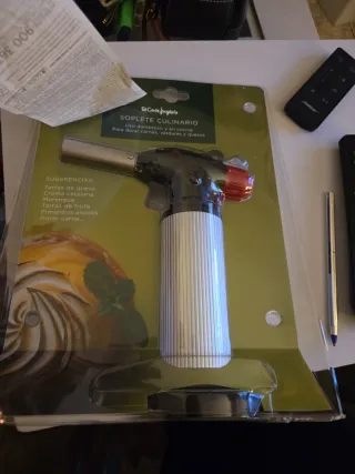 Soplete de cocina versátil y fácil de usar. - Diseño ergonómico para un agarre cómodo. - Mecanismo de encendido seguro. - Cuerpo de metal resistente. Solo se a usado una vez ,lo vendo por falta de uso