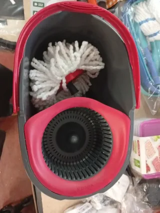 Cubo de fregona de la marca Vileda. - Color gris y rojo. - Incluye asa para facilitar su transporte.