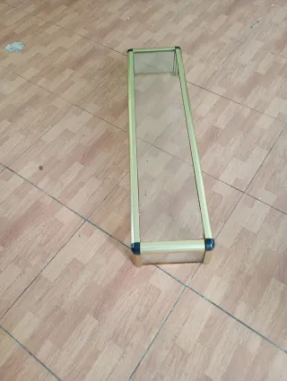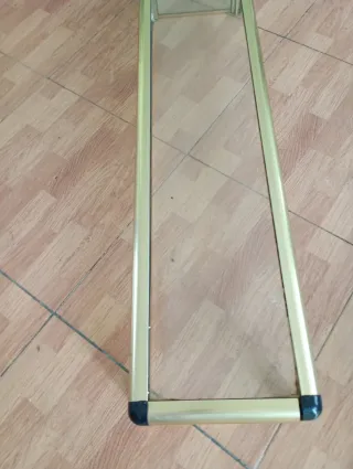Vendo 2 Expositores metálicos con acabado dorado, ideales para bares o comercios. - Marco de aluminio dorado. - Panel de cristal. - Esquinas con protectores negros.