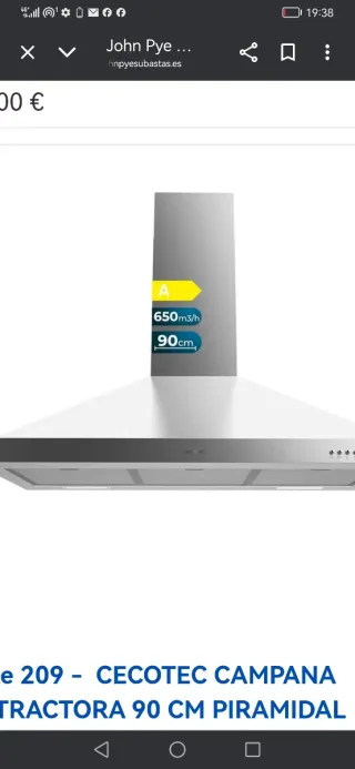 Campana extractora de 90 cm, nueva a estrenar. Diseño piramidal. - Clase energética A. - Caudal de extracción de 650 m3/h. - Ancho de 90 cm.