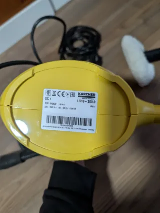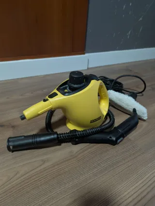 Limpiadora de vapor Karcher SC1 en color amarillo. - Incluye manguera de vapor con pistola. - Boquilla de mano. - Cepillo redondo.