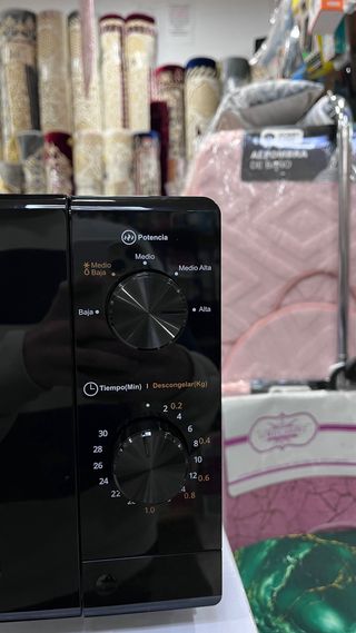 Microondas Svan modelo SMW19700N de color negro. - Diseño moderno y compacto. - Panel de control mecánico con temporizador y selector de potencia. - Puerta con ventana para visualizar el interior.