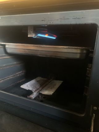 Horno de cocina en buen estado. - Color blanco. - Tirador metálico. - Panel de control con mandos giratorios y luz indicadora.