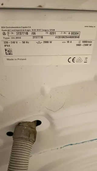 Lavadora Balay Blanca 1000 rev/min capacidad 6kg