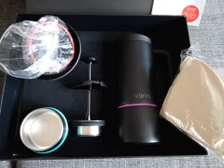 Cafetera Varia Multi Brewer, ideal para preparar café de diversas formas. Incluye todos los componentes originales. - Cafetera Varia Multi Brewer. - Manual de instrucciones. - Filtros de papel. - Accesorios para la preparación. Nueva utilizada solo una vez, vendemos porque no la utilizamos porque ya tenemos otra. Permite hacer café filtro, café francés, mokka, hervidor y te frio y caliente. Nuevo con su caja original y todos los filtros y gomas.