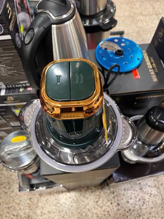Picadora de carne Royal Swiss con capacidad de 3 litros. Diseño elegante en color verde con detalles dorados. - Material: Acero inoxidable SUS 304. - Marca: Royal Swiss. - Modelo: Meat Max.
