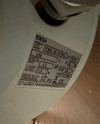 Se vende termo eléctrico de la marca IOSEN (Modelo ZP30V) con capacidad de 30 litros. Ideal para estudios, una persona o segundas residencias por su tamaño compacto. Estado y funcionamiento: El termo funciona perfectamente y calienta el agua rápido (1200W). Proviene de una vivienda de una persona mayor, por lo que ha tenido muy poco uso interno. Detalles estéticos: Como se puede ver en las fotos, tiene algunas marcas superficiales de óxido/suciedad en la junta exterior de la carcasa blanca. Es un detalle estético que no afecta en absoluto a su funcionamiento ni a la calidad del agua. No tiene fugas.