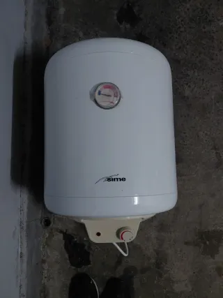 Termo eléctrico de la marca Sime, color blanco. - Termómetro indicador de temperatura. - Control de temperatura regulable. - De 50L