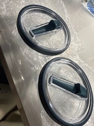 Se venden dos tapas de repuesto para termos Stanley. Son transparentes con borde gris y tapa para beber. - Material: Plástico y silicona. - Color: Transparente con detalles en gris oscuro.