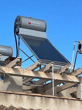 Placa sanitaria ACS Baxi Roca con termosifón, conexión Wi-Fi y gran potencial (¡4 años de uso!) ¡Atención a los amantes de la energía solar! Vendo un sistema de placa sanitaria ACS de la reconocida marca Baxi Roca, con termosifón de 200 litros y serpentín integrado. Incluye conexión Wi-Fi para monitorizar todo cómodamente y su caja de registro con sonda para mayor control. Detalles importantes: • Durabilidad garantizada: Solo tiene 4 años y está diseñada para más de 20 años de vida útil. • Perfecta para quienes buscan aprovechar al máximo la energía solar y reducir su factura energética. • Motivo de la venta: Estoy renovando mi sistema por otro más acorde con mis nuevas necesidades (he instalado paneles solares y pasaré a un termo eléctrico). Transparencia total • El bidón termosifón presenta algo de óxido interno, lo que puede ocasionar que el agua salga algo turbia. Por ello, esta venta es ideal para quienes quieran sustituir únicamente el bidón o utilizar la placa en otro sistema. La placa solar y la caja de conexión Wi-Fi están en perfecto estado. Precios irresistibles: 1. Placa solar + bidón termosifón (200L): 300 € 2. Placa solar + bidón termosifón + caja de registro Wi-Fi y sonda: 500 € * Con un pago de 100€ por adelantado, se la bajo y la dejo en el patio para solo venir y cargar. Nota: El precio de este sistema nuevo con control de sonda y Wi-Fi ronda los 1.900 €. Esta es una gran oportunidad para ahorrar en tu sistema de agua caliente sanitaria, aprovechando un equipo de alta calidad con mucho recorrido por delante. ¡No pierdas esta oportunidad! Escríbeme y resolvemos cualquier duda sin compromiso.