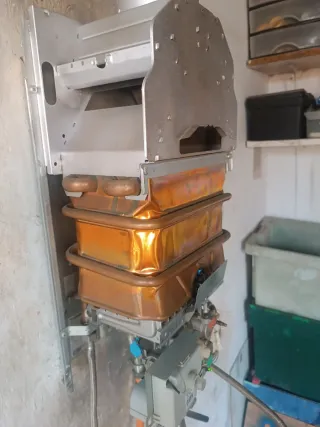 Termo de gas butano atmosférico donce litros de la marca NECA que es la marca blanca de junker retirado en perfecto estado funcionando como se ve en la foto sustituido por termo eléctrico