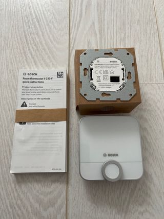 Termostato de ambiente Bosch, modelo Room thermostat II. - Voltaje: 230 V. - Color blanco/gris