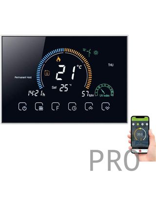 Termostato WiFi para Caldera de Gas, Control de Voz Mediante aplicación, Pantalla LCD retroiluminada, visualización de Humedad y UV, programable y Compatible con Alexa y Google Home