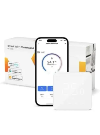 ESTADO: COMO NUEVO DEFECTO: NINGUNA LOCALIZACION: T-P4-E4-F5 Termostato inteligente Meross MTS200, en perfecto estado. Funciona con WiFi y es compatible con Google Home y Apple Home. - Control preciso de la temperatura. - Monitoriza el consumo de calefacción. - Diseño elegante y compacto. - Incluye 1 termostato.