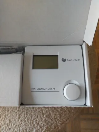 Termostato digital Saunier Duval Exacontrol Select. Diseño moderno en color blanco. El termostato es totalmente nuevo, me vino al sustituir mi caldera antigua por una nueva pero al final me quedé con el que ya tenía por lo que no llegué a usar este.
