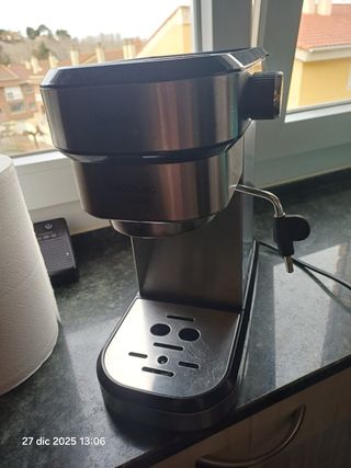 Cafetera de brazo Cecotec. - Diseño moderno en acero inoxidable y plástico. - Depósito de agua extraíble. - Bandeja recogegotas. - Vaporizador para espumar leche.