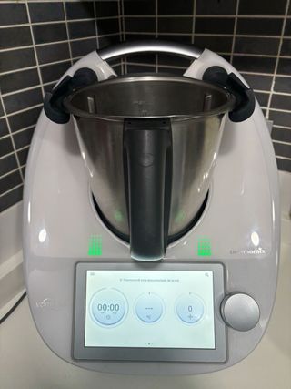 Robot de cocina Thermomix TM6. - Color blanco. - Pantalla táctil. - Cuchilla de acero inoxidable. - Accesorio varoma - Cestillo - Mariposa - Espatula - Accesorio para evitar usar las cuchillas Funcionando perfectamente, poco uso.