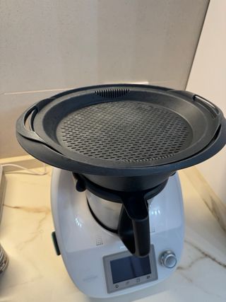 Cortador para Thermomix TM6 en excelente estado, con muy poco uso. - Diseño en color negro. - Incluye las asas laterales para un mejor agarre.