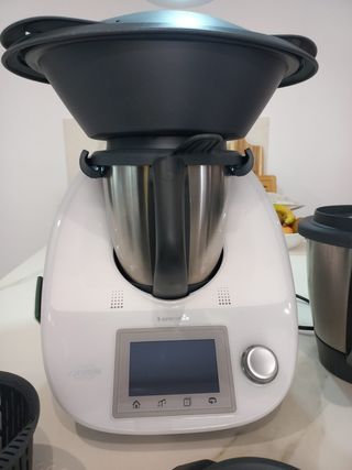 Robot de cocina Thermomix TM5 de Vorwerk. Diseño moderno y funcional. - Jarra de acero inoxidable. - Pantalla táctil. - Incluye accesorios.