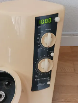 Robot de cocina Thermomix TM21 de Vorwerk. Un clásico para la preparación de alimentos. - Panel de control con diales para temperatura y velocidad. - Función Turbo. - Indicador de temperatura Varoma.