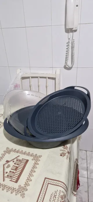 Accesorio Varoma original para Thermomix TM31. Incluye la cubeta , la bandeja perforada y la tapa. En muy buen estado, sin apenas uso. - Varoma de plástico gris oscuro. - Bandeja perforada gris oscuro. - Tapa transparente.