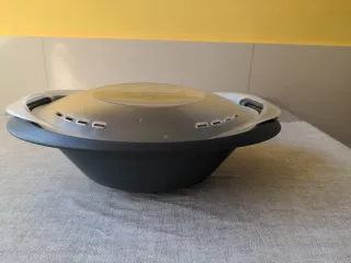Recipiente Varoma original para Thermomix TM31. Ideal para cocinar al vapor. No sé ha usado. - Color gris oscuro. - Tapa translúcida con rejillas de ventilación.