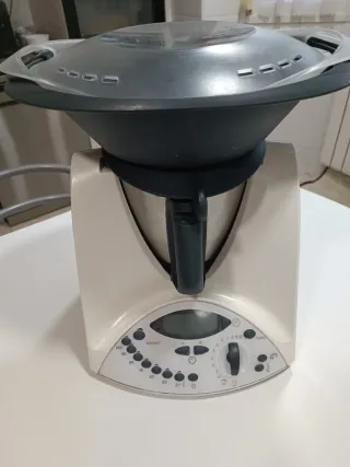 Se vende robot de cocina Thermomix tm31 La maquina esta revisada, limpia y desinfectada. Rodamientos del motor nuevos. Mandos originales en muy buen estado. Tapa del vaso y junta nuevos. Cuchillas, cubilete, mariposa y espátula nuevas. Se incluye cestillo y varoma con tapa nueva. Tiene un pequeño fallo en la carcasa blanca en el lateral que no se ve mucho. Medio año de garantía incluso restauración. Se puede entregar en mano en Madrid y alrededores. También se puede enviar por correos.