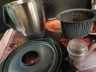 Se vende vaso para Thermomix TM31 junto con sus accesorios. - Vaso de acero inoxidable. - Cestillo. - Mariposa. - Tapa medidora.