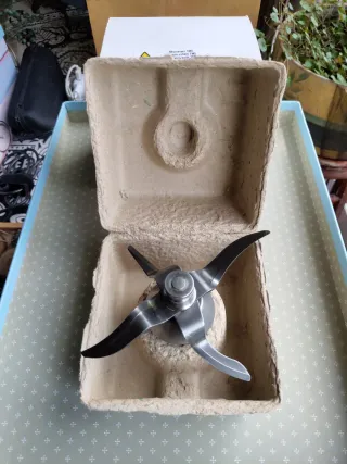 Juego de cuchillas para TM5 para reparación o despiece para recambios. Se encuentran al final de su vida útil. Giran bien y apenas tienen holgura, las cuchillas cuentan con poco filo, la máquina comienza a emitir más ruido y a perder su estanqueidad. Se entregan con su caja original Vorwerk. Solo recogida. Más productos Thermomix en mi perfil.