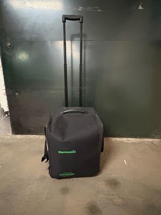 Práctico trolley para transportar tu Thermomix. - Color negro. - Logo de Thermomix y Vorwerk. - Ruedas y asa extensible para facilitar el transporte. Bolsa de transporte con ruedas, ideal para tm5 y tm6, ademas incluye bolsa para varoma