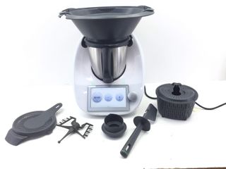 Robot de cocina Thermomix TM6 en color blanco. Incluye todos sus accesorios. - Jarra de acero inoxidable. - Tapa con cierre hermético. - Varoma para cocinar al vapor. - Cesta. - Espátula. - Mariposa. - Libro de cocina. - Caja original