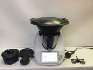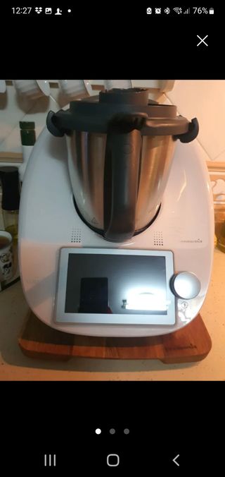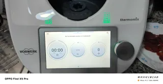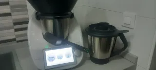 Thermomix ultima edicion con muy poco uso, incluye los accesorios basicos de thermomix, el pack dulce navidad y algunos accesorios comprados a parte como mariposa, cubrecuchillas... las burbujas de la pantalla es el plastico protector sin quitar, plastico azul tambien son pegatinas de proteccion.